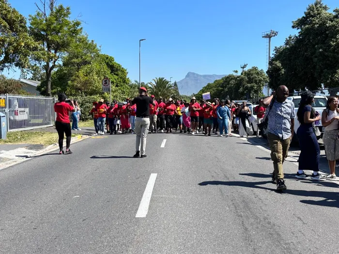 Parents, pupils, and political party members gathered outside Milnerton High School on Wednesday, October 22, demanding accountability after a viral video showed a Grade 10 boy being assaulted by a group of older boys.