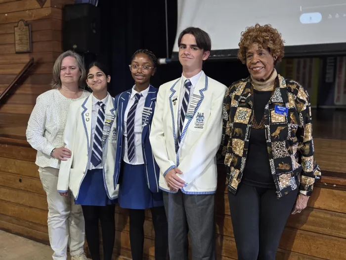Parklands College pupils came in 3rd place; from left, Teacher Carine le Roux; Naeha Naidu; Wanganae Masindi; Connor Niske; Dr Bettye Walker