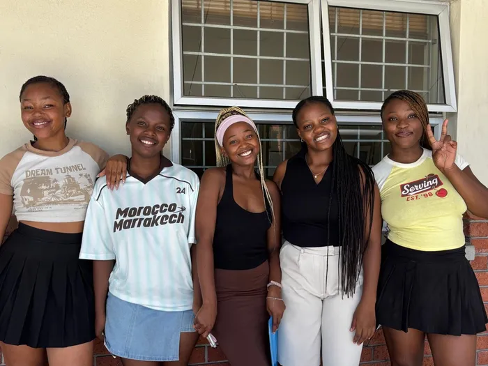 From left; Onesisa Maliti, Ubuhlobo Gwadiso, Dikano Molise, Amahle Mpengu, Teressa Iwuze, waited patiently outside Sinenjongo High School for their matric results